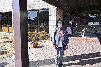 文化会館入り口でお客様の案内をしているのは、先程お花を生けていたスタッフTさん。 「外の受付さん」です! |