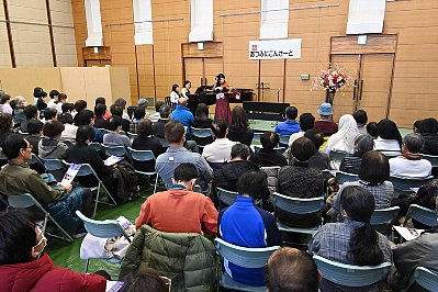 ここで、ドリームの会の生徒さんよりグルッポ フレスコの皆さんへ、花束が贈られました。 そして会場からは温かく盛大な拍手が沸き起こり ・・・ |
