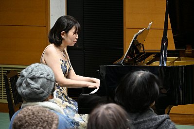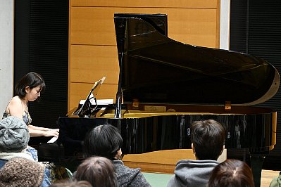 じつは、リハーサル前のステージの準備中に奥村さんと娘さんの那月さんが、ピアノの位置について真剣に話し合っておられました。 演奏中はお互いが目線でコンタクトを取っておられるそうで、ベストポジションをお二人で何度も調整されていました。 なんとも仲睦まじい瞬間でしたね!