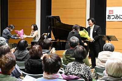 ここで、あつみにこんさーとのスタッフよりお二人へ花束が贈られました。 そして、会場から温かく盛大な拍手が沸き起こります。