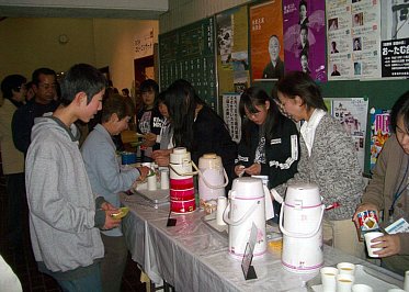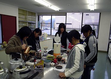 別室ではお茶係の中学生ボランティアがコーヒーを入れています。 それをやさしく見守る高校生スタッフ。