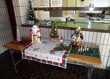 | 受付ではクリスマスの飾り付けが行われています。 |