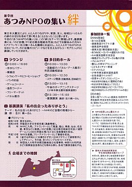 2012年2月5日(日)、渥美文化会館の多目的ホール、およびラウンジにて「第9回あつみNPOの集い」が開催されました。 まず、パネル展示から紹介させていただきます。 最初は渥美混声合唱団