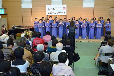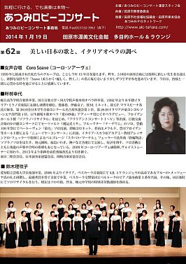 前半ステージは豊橋の女声コーラス Coro Soave(コーロ・ソアーヴェ)の皆さんによる美しい日本の歌の数々。 指揮は畔蜊K代さん、ピアノは鈴木理咲子さんです。