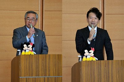 続いて、来賓として田原市長の鈴木克幸さん(左)、愛知県議会議員の山本浩史さん(右)より、ご挨拶をいただきました。