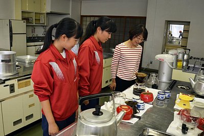 料理研修室ではスタッフE さんの優しい指導の下、中学生スタッフがコーヒーを入れています。