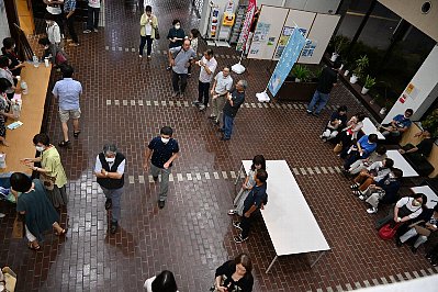 本日は満員御礼。 当初の予想を上回る入場者数で座席が足らなくなり、急きょホール内へと椅子を運び込むことに! |