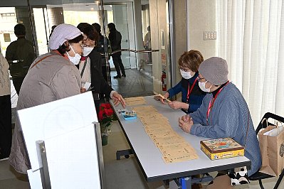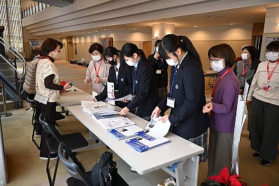 ドリームの会の皆さんには早速、チラシのとじ込み作業を行ってもらいました。 |