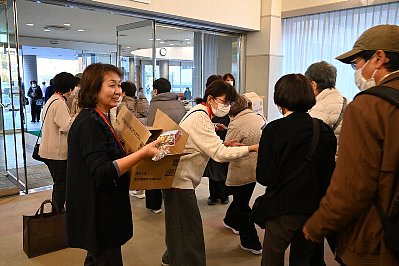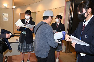 ドリームの会の生徒さん3名が、お客様にプログラムを手渡しします。 皆さん、お願いしま〜す! |