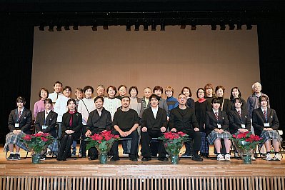 伊良湖岬小学校の児童・卒業生の皆さん、そして先生方。 なお、最後列右が校長先生です。 地元ならではの一体感に包まれた素晴らしいステージでした! |