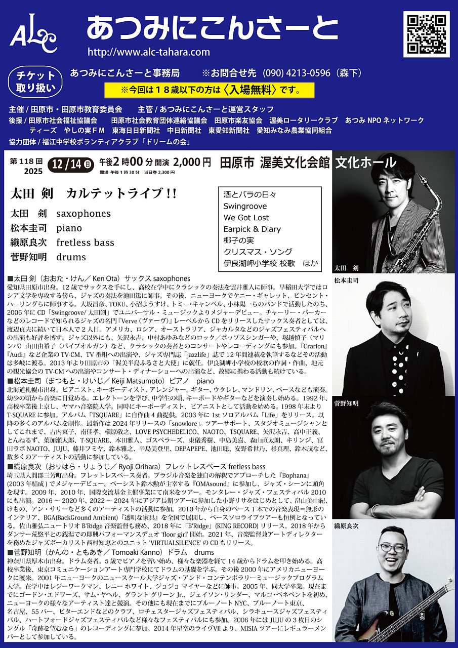 2025年12月14日(日) 午後2時開演(開場 午後1時半)